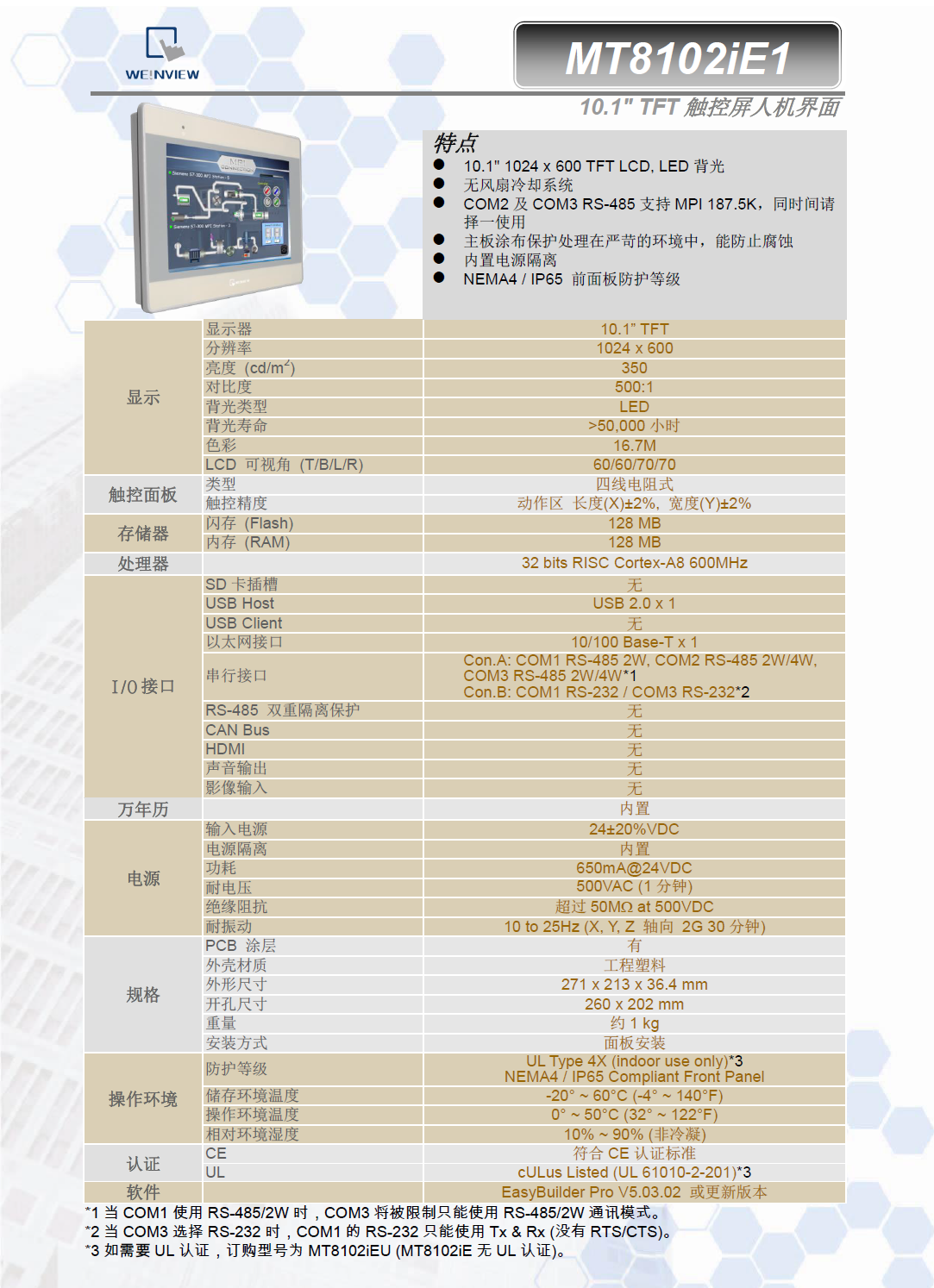 NEMA4/IP65 前面板防护等级